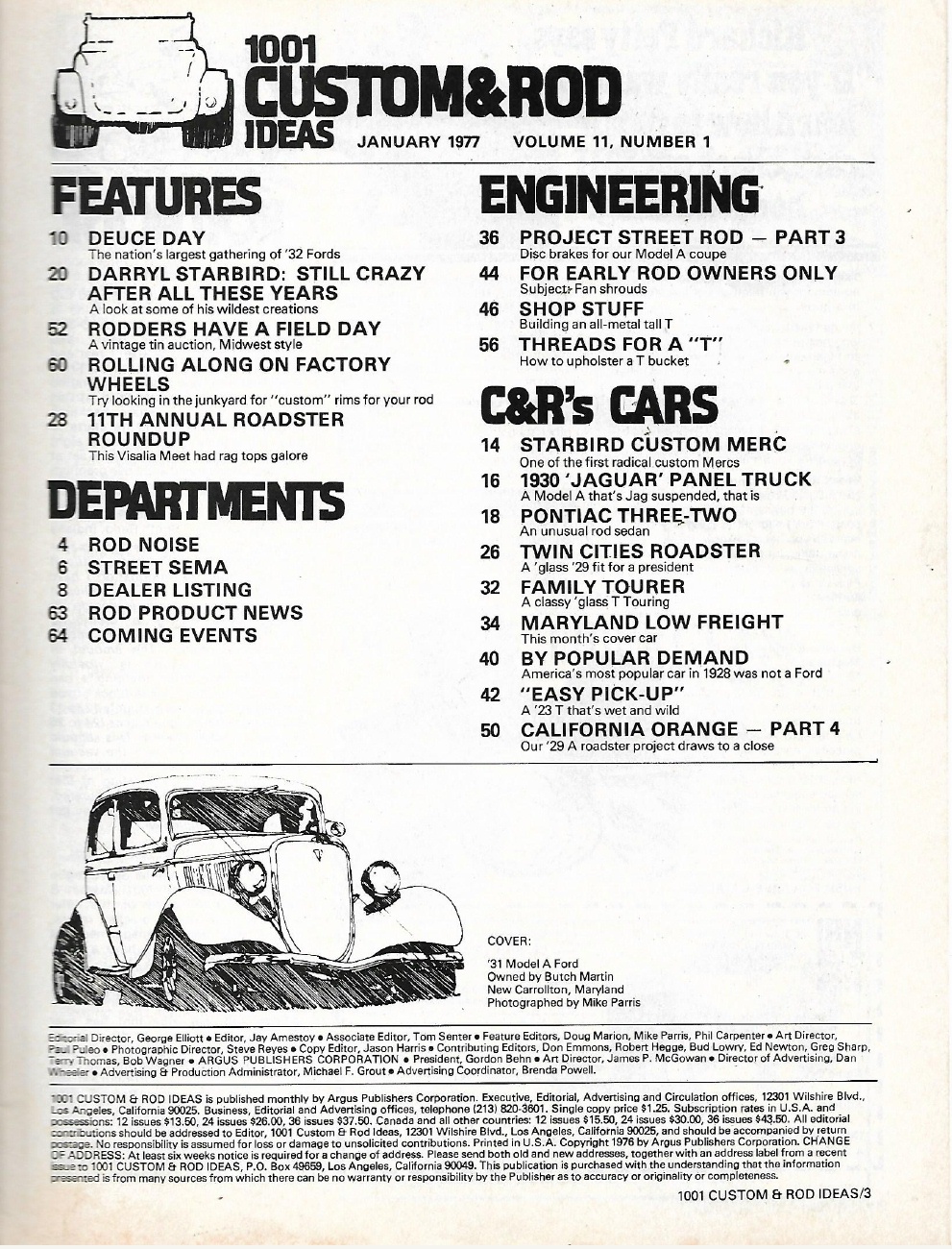 1001 CUSTOM AND ROD IDEAS 1977 JAN -There is no description for this magazine yet. See picture of cover and contents below for details.