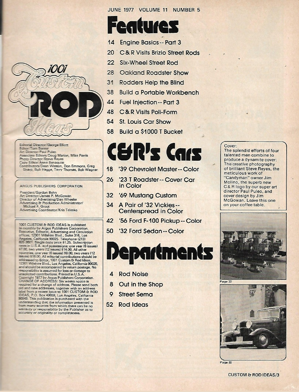 Reviews 1001 CUSTOM AND ROD IDEAS 1977 JUNE - MOLINIO'S CANDY MAN T, 6 WHEEL ROADSTER
