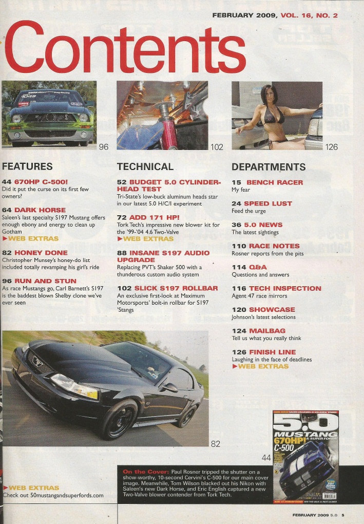 Reviews 5.0 MUSTANG 2009 FEB - SALEEN DARK HORSE, 5.0 HEAD TEST, S197 ROLLBAR*