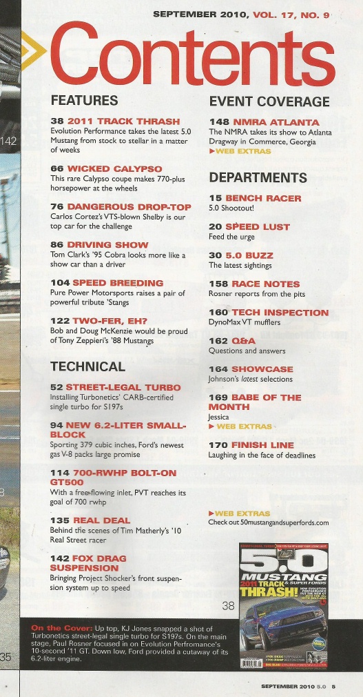 Reviews 5.0 MUSTANG 2010 SEPT - FOX DRAG SUSPENSION, NEW 6.2L MILL, '11 TEST