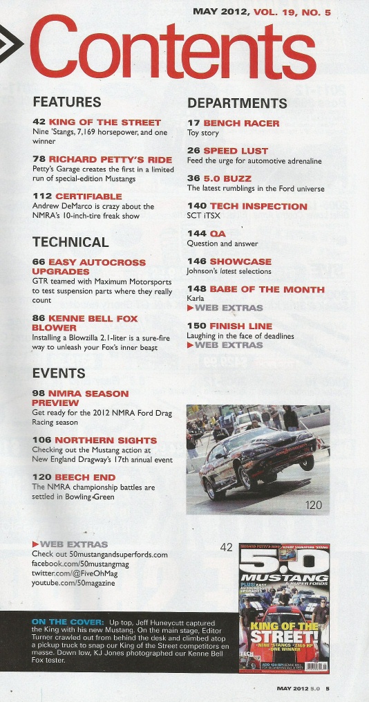 Reviews 5.0 MUSTANG 2012 MAY - PETTY's PONY, KENNY BELL FOX INSTALL, SHOOTOUT