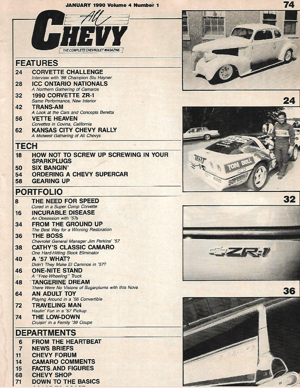 Reviews ALL CHEVY 1990 JAN - COVINA VETTES, CARBS, MANIFOLDS, CAMS, RACERS, ICC NATS