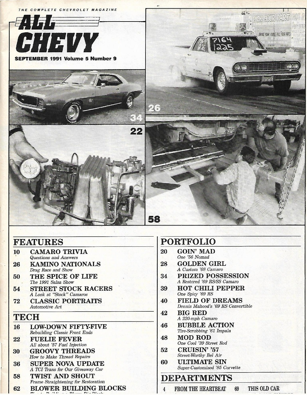 Reviews ALL CHEVY 1991 SEPT - CAMARO TRIVIA-ANNIV SPECIAL, BLOWER BUILD UPS