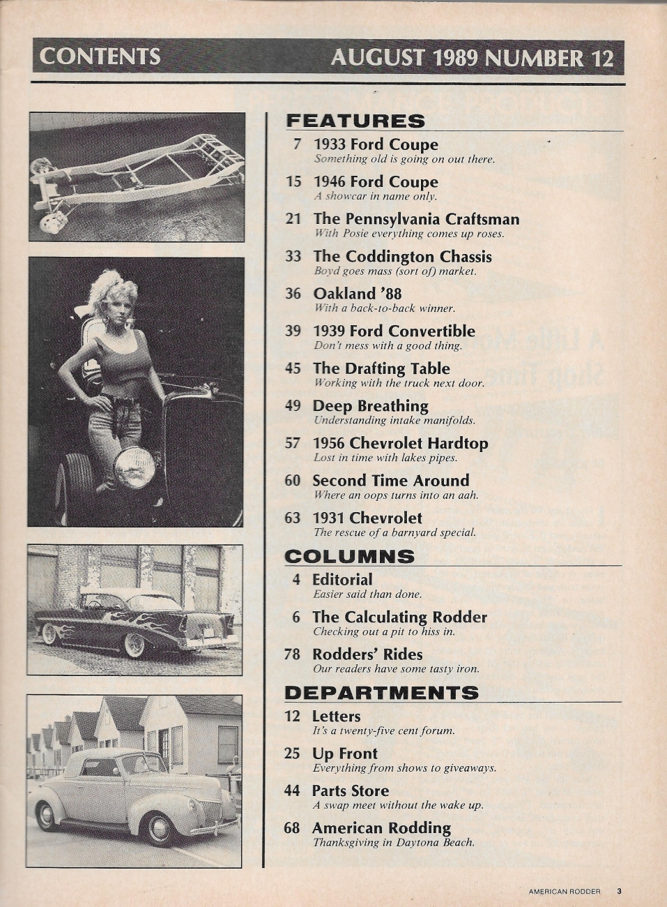 AMERICAN RODDER 1989 AUG - POSIE, CODDINGTON CHASSIS, OAKLAND '88, INTAKES