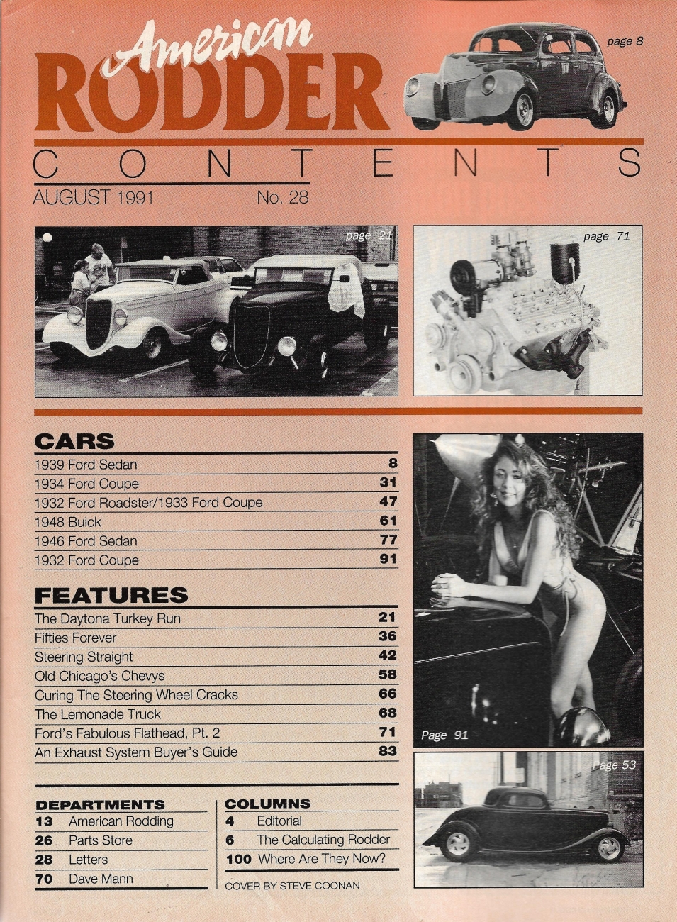 Reviews AMERICAN RODDER 1991 AUG - FLAMES, EARLY CHEVYS,EXHAUSTS, STEERING WHEEL CRACKS