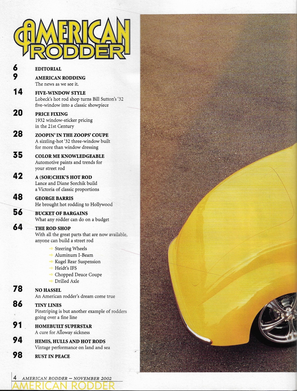 Reviews AMERICAN RODDER 2002 NOV - DEUCE SPECIAL, GEORGE BARRIS, CUSTOM STEERING WHEELS