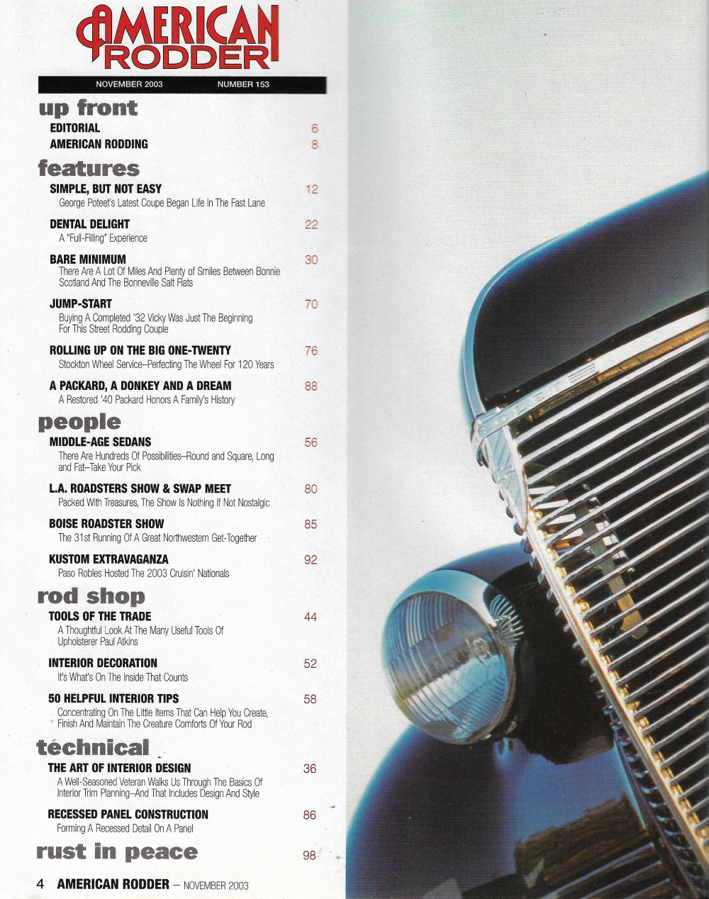 Reviews AMERICAN RODDER 2003 NOV - MIDDLE AGE SEDANS, TOM SWELL, STOCKTON WHEELS
