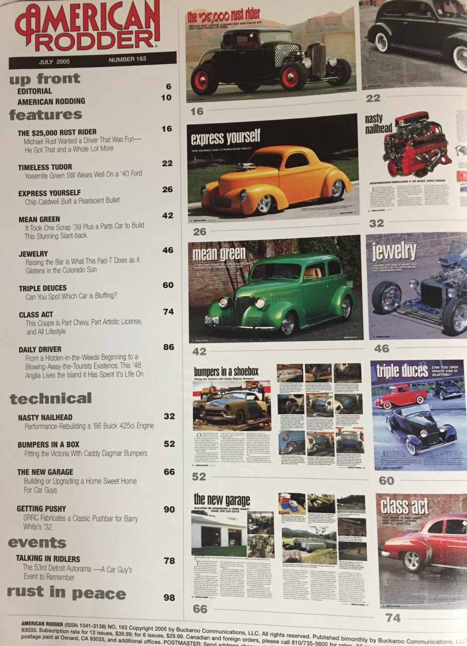Reviews AMERICAN RODDER 2005 JULY - NAIL HEAD, DAGMAR BUMPERS, STREET WILLYS GASSER
