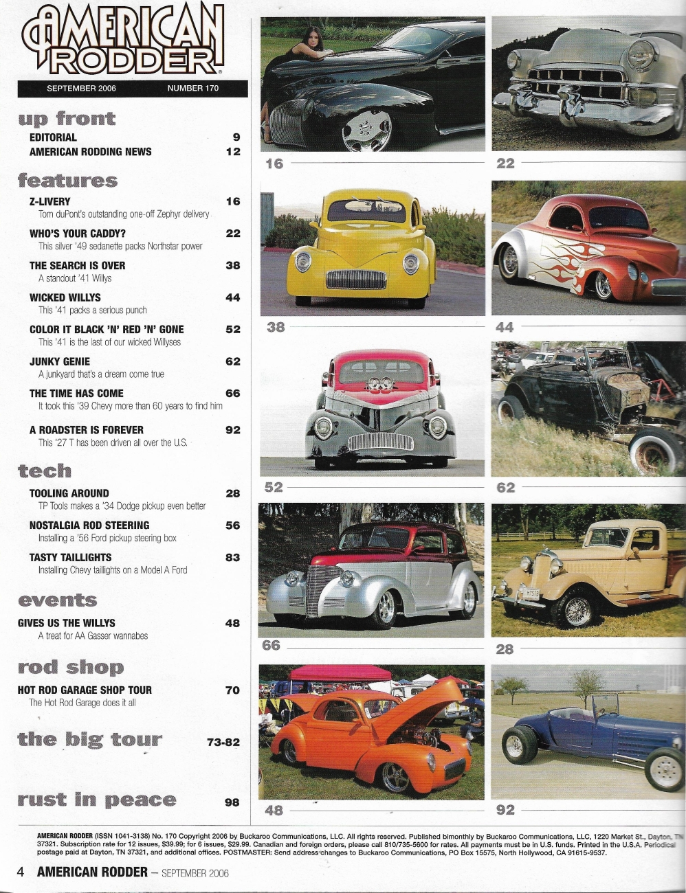 Reviews AMERICAN RODDER 2006 SEPT - WILLYS GASSER,Z-LIVERY, '29 SEDANETTE, '34 DODGE PU