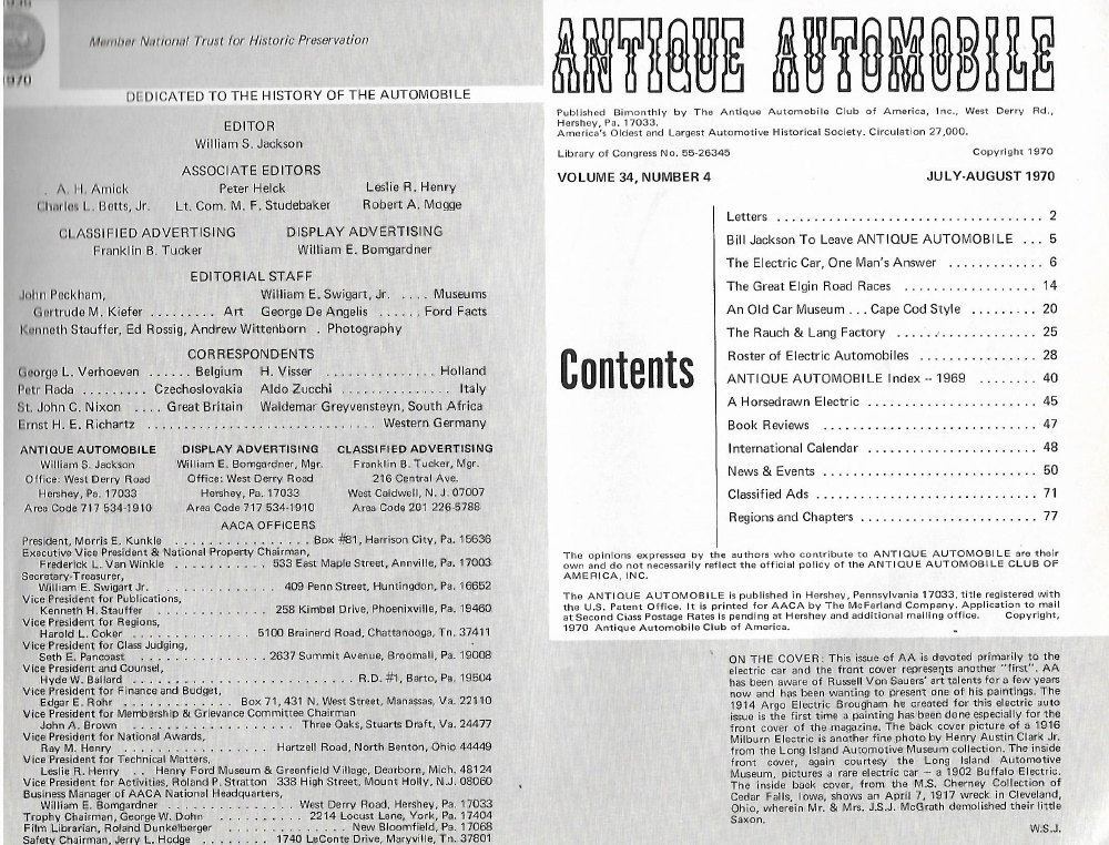 Reviews ANTIQUE AUTOMOBILE 1970 JULY - ELECTRIC CARS, '14 ARGO, '16 MILBURN,'02 BUFFALO