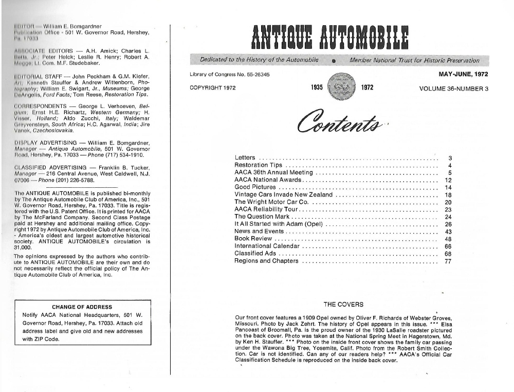 Reviews ANTIQUE AUTOMOBILE 1972 MAY - '09 OPEL, HISTORY OF OPEL, '30 LASALLE ROADSTER