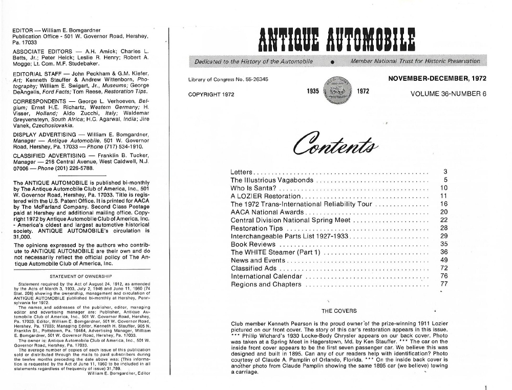 Reviews ANTIQUE AUTOMOBILE 1972 NOV - '11 LOZIER, '30 LOCKE-BODY CHRYSLER