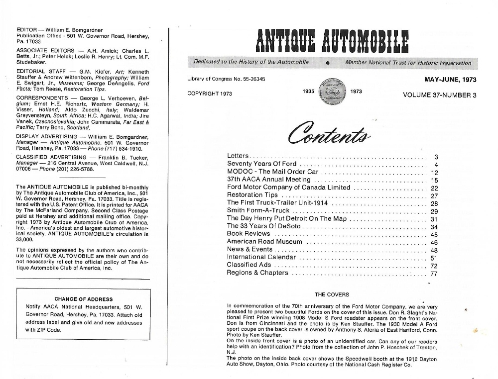 Reviews ANTIQUE AUTOMOBILE 1973 MAY - '08 MODEL S FORD, '30 MODEL A FORD, DESOTOS,