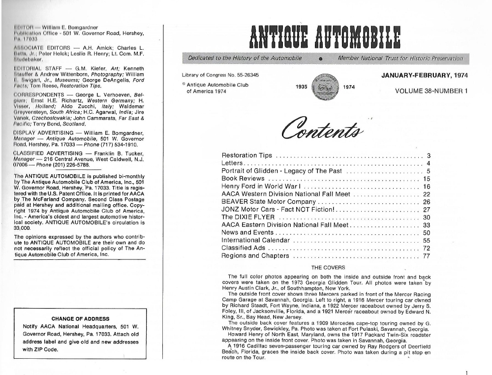 Reviews ANTIQUE AUTOMOBILE 1974 JAN - MERCERS, '09 MERCEDES, '17 PACKARD, BEVER STATE