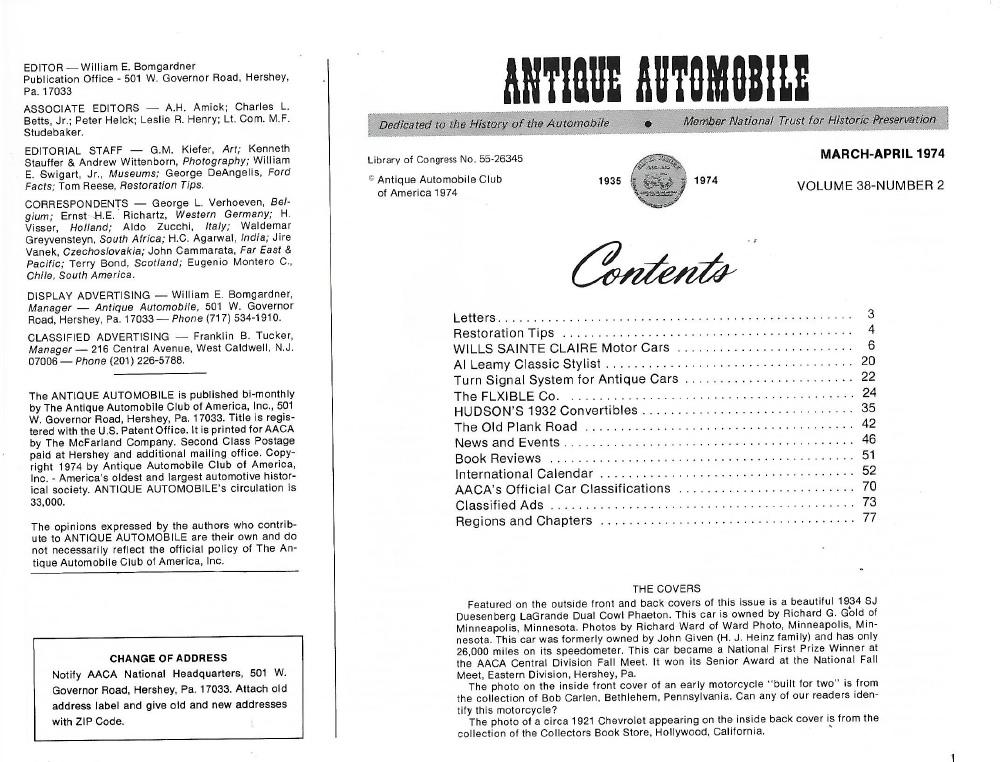 Reviews ANTIQUE AUTOMOBILE 1974 MAR - HUDSON'S '32 CONV, '34 SJ DUSENBERG LAGRANDE
