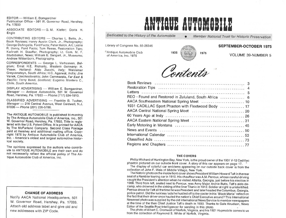 Reviews ANTIQUE AUTOMOBILE 1975 SEPT - '31 V-12 CADDY SPORT PHAETON FLEETWOOD, REO