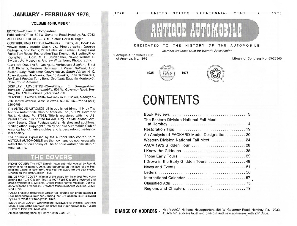 Reviews ANTIQUE AUTOMOBILE 1976 JAN - '27 LINCOLN TOWN CABRIOLET, '07 FORD K,'16 PIERCE