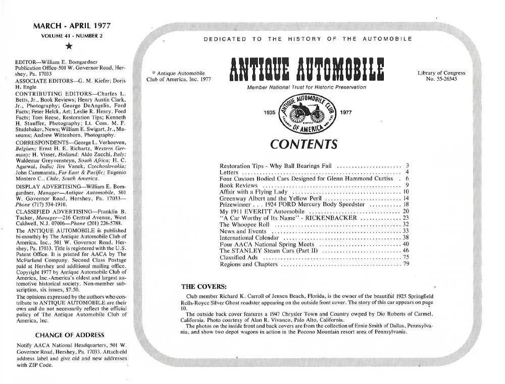 Reviews ANTIQUE AUTOMOBILE 1977 MAR - '25 SPRINGFIELD R-R SILVER GHOST, '47 CHRYSLER TC