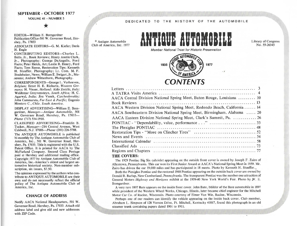 Reviews ANTIQUE AUTOMOBILE 1977 SEPT - '29 PONTIAC BIG SIX, '97 BATE, '40 PONTIAC