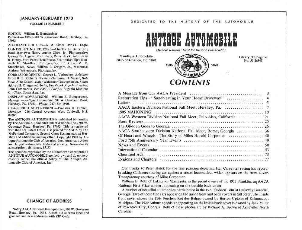 Reviews ANTIQUE AUTOMOBILE 1978 JAN - '27 FRANKLIN, '29 AUBURN, '04 PEERLESS