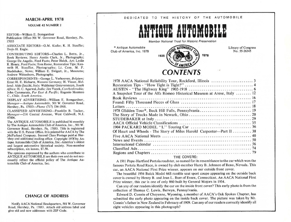 Reviews ANTIQUE AUTOMOBILE 1978 MAR - '11 POPE-HARTFORD PORTOLA, HEARTS & WHEELS PT II