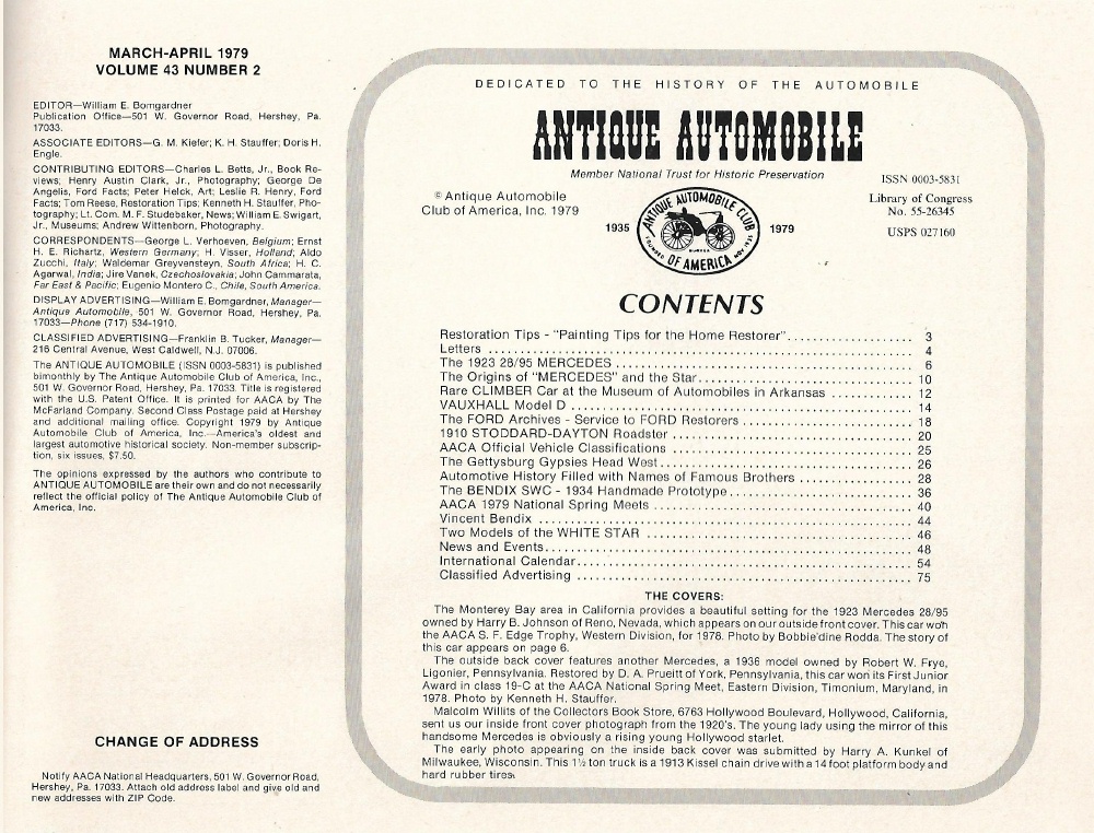 Reviews ANTIQUE AUTOMOBILE 1979 MAR - '23 28/95 MERCEDES, VAUXHALL MODEL D, WHITE STAR