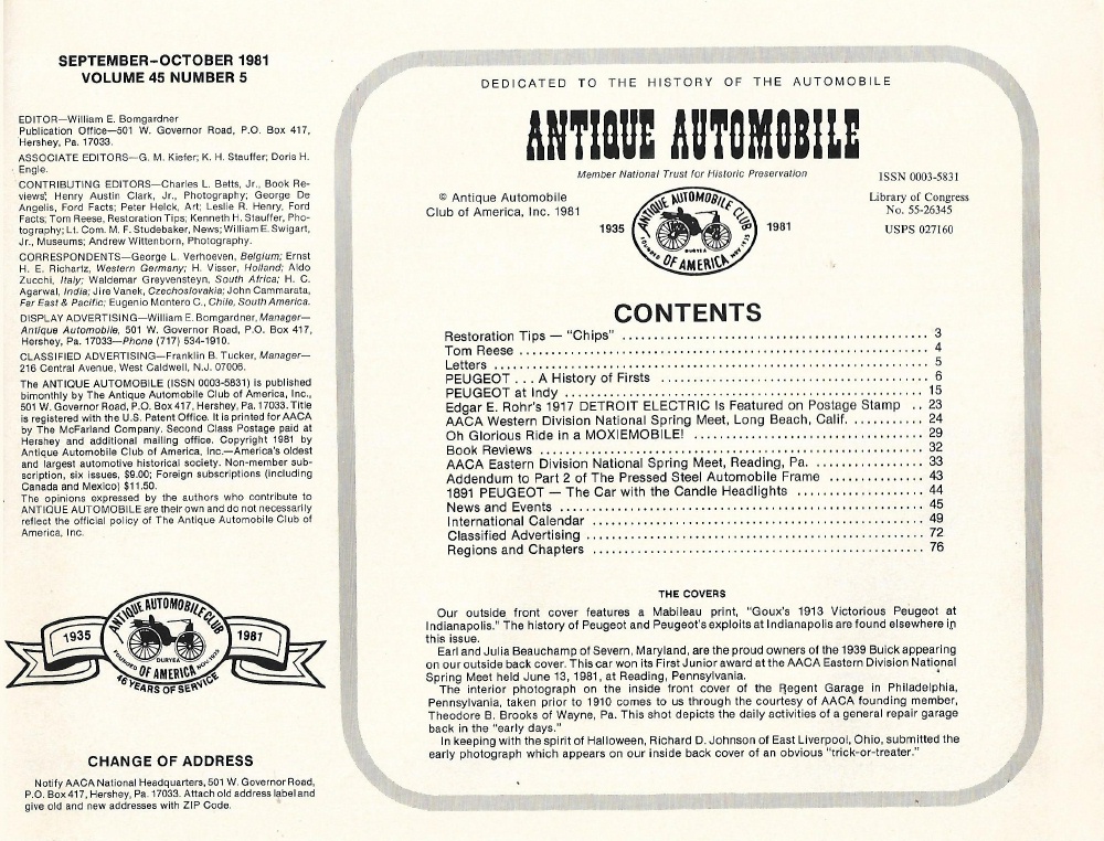 Reviews ANTIQUE AUTOMOBILE 1981 SEPT - '91 PEUGEOT & MORE, PRESSED STEEL PT II