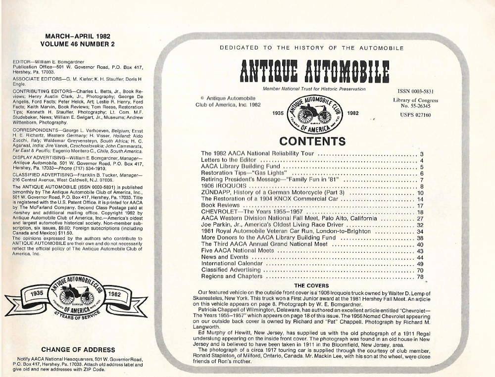 Reviews ANTIQUE AUTOMOBILE 1982 MAR - '06 IROQUOIS TRUCK, CHEVROLET '55-57, '11 REGAL