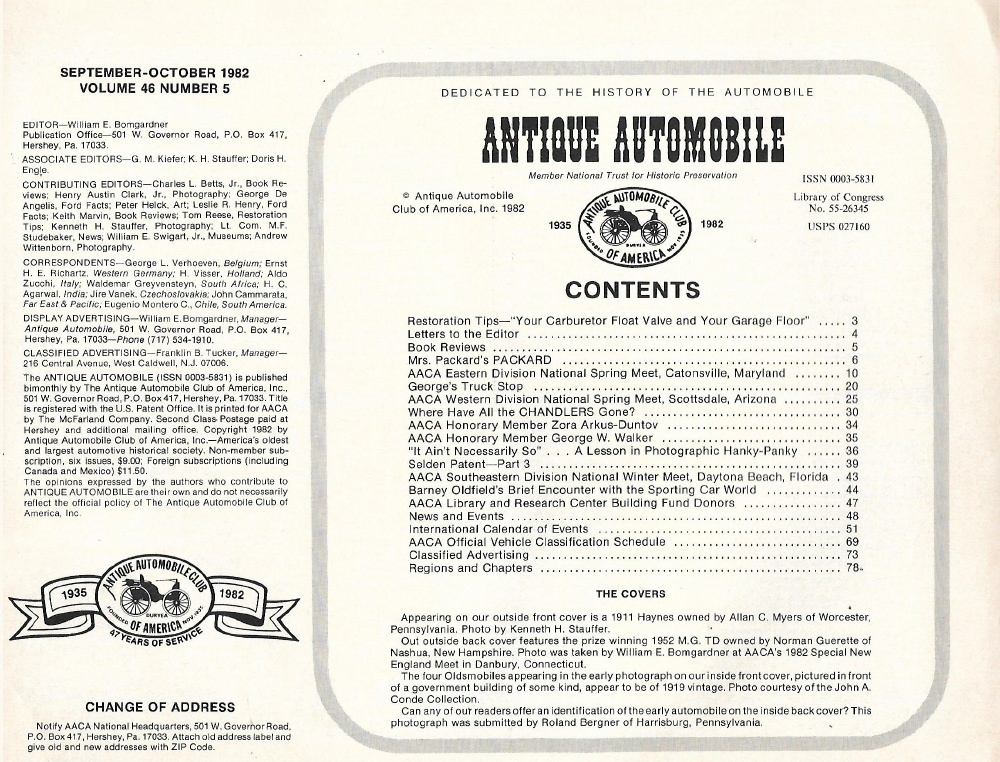 Reviews ANTIQUE AUTOMOBILE 1982 SEPT - '11 HAYNES, '52 M G, CHANDLERS