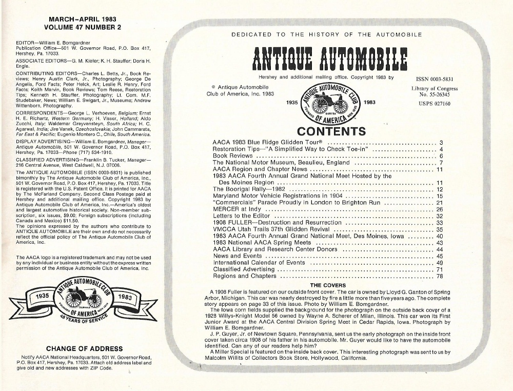Reviews ANTIQUE AUTOMOBILE 1983 MAR - '08 FULLER, MERCER, '28 WILLYS-KNIGHT MODEL 56