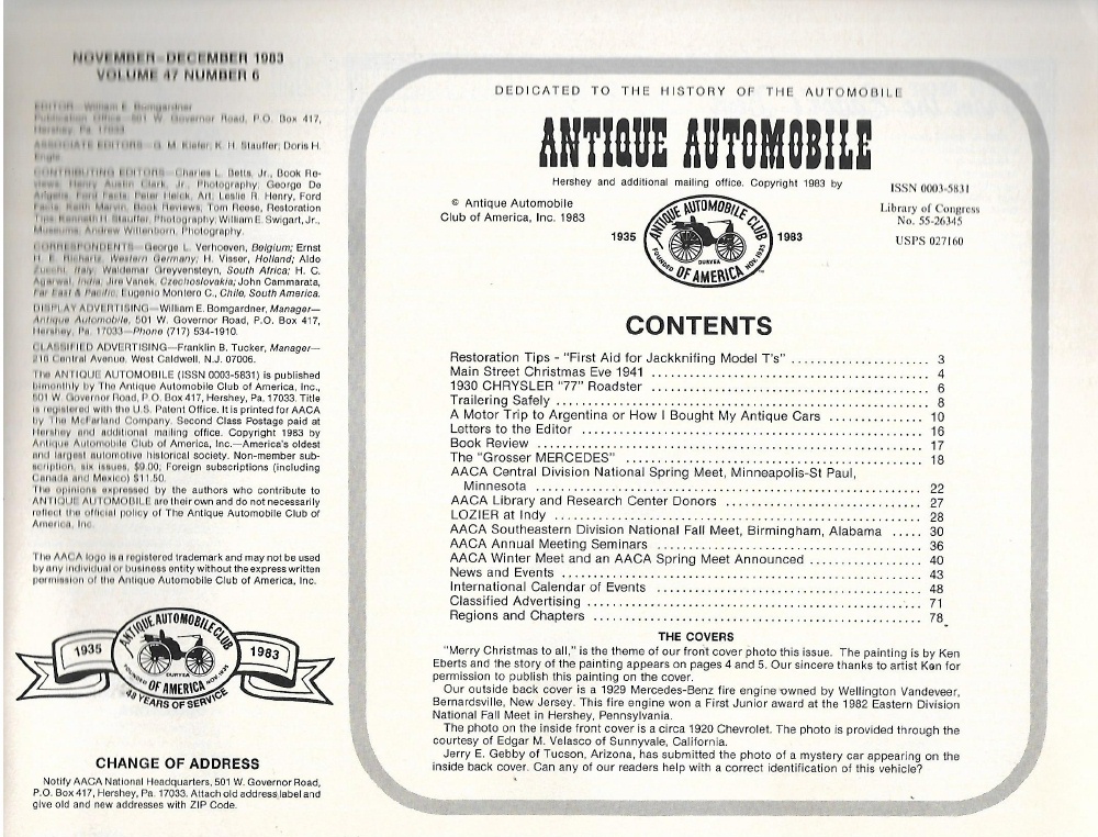 Reviews ANTIQUE AUTOMOBILE 1983 NOV - GROSSER MERCEDES, '30 CHRYSLER "77" ROADSTER