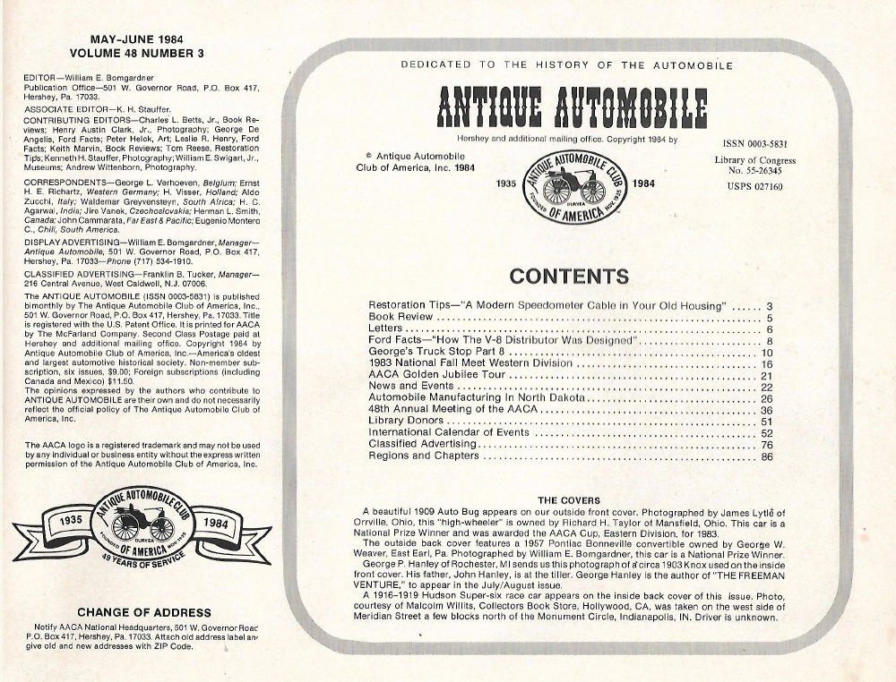 Reviews ANTIQUE AUTOMOBILE 1984 MAY - '09 AUTO BUG, '57 BONNEVILLE,HUDSON SUPER SIX