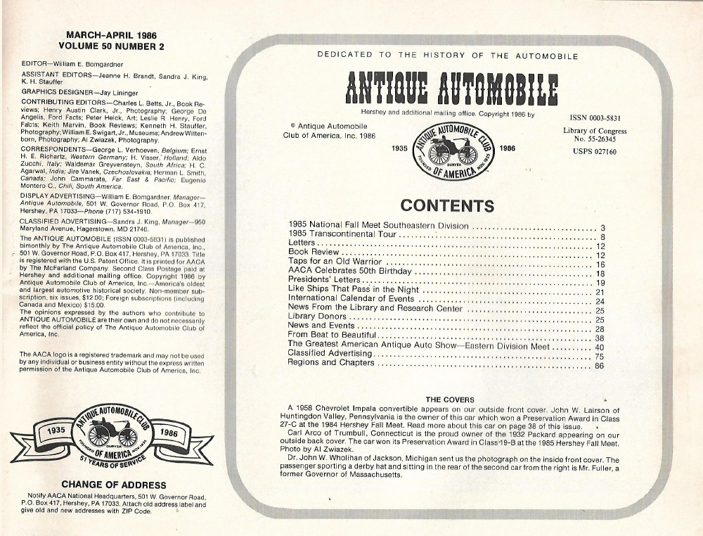 Reviews ANTIQUE AUTOMOBILE 1986 MAR - '58 CHEVY IMPALA CONV, '32 PACKARD