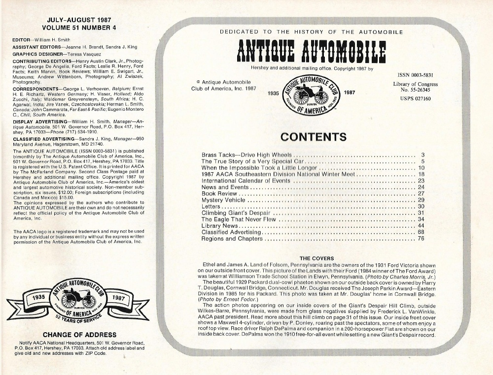Reviews ANTIQUE AUTOMOBILE 1987 JULY - '31 VICTORIA, '29 PACKARD, MAXWELL 4-CYL
