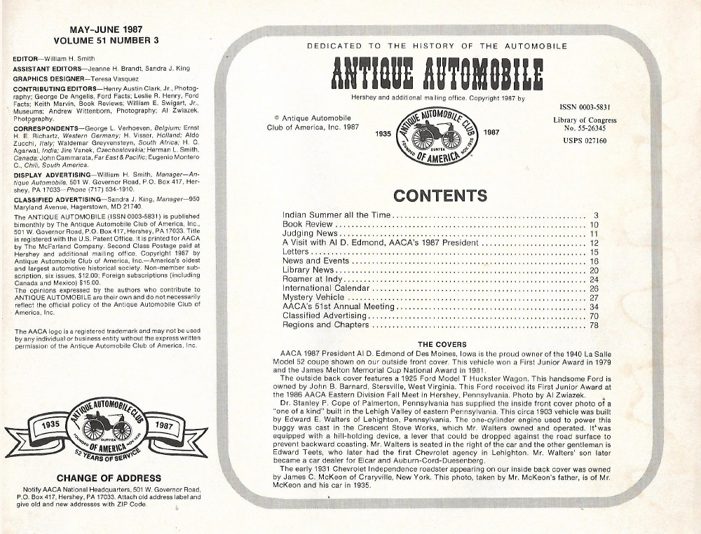 Reviews ANTIQUE AUTOMOBILE 1987 MAY - '40 LA SALLE MODEL 52, '25 MODEL T HUCKSTER