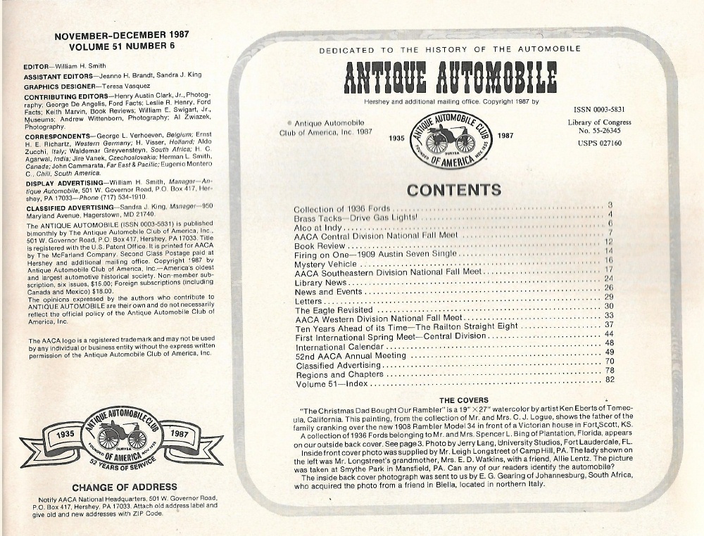 Reviews ANTIQUE AUTOMOBILE 1987 NOV - '08 RAMBLER M-34, '36 FORDS, '08 AUSTIN 7 SINGLE
