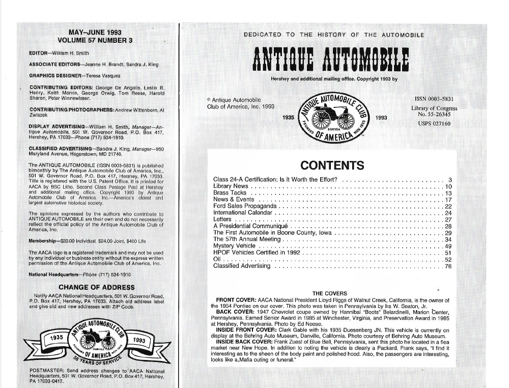 Reviews ANTIQUE AUTOMOBILE 1993 MAY - '47 CHEVROLET COUPE, '35 DUSENBERG, CLASS 24-A