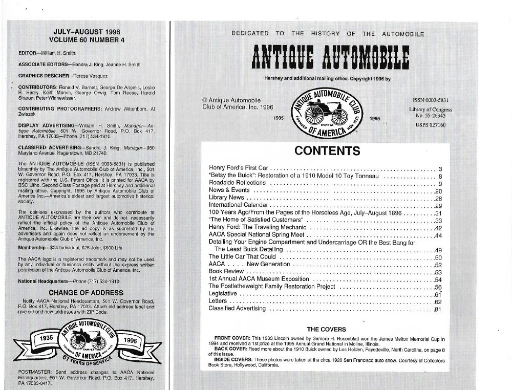 Reviews ANTIQUE AUTOMOBILE 1996 JULY - '33 LINCOLN, '10 BUICK, HENRY FORD