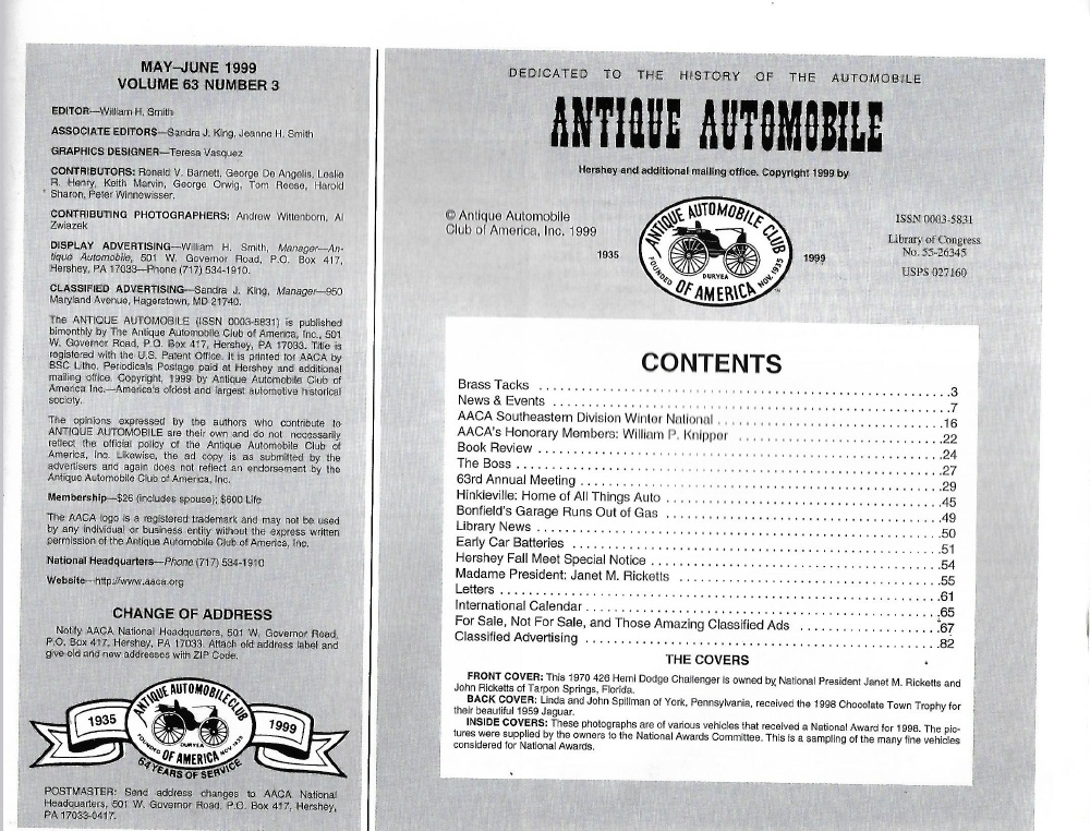 Reviews ANTIQUE AUTOMOBILE 1999 MAY - HINKLEVILLE, '70 DODGE 426 HEMI, '59 JAGUAR