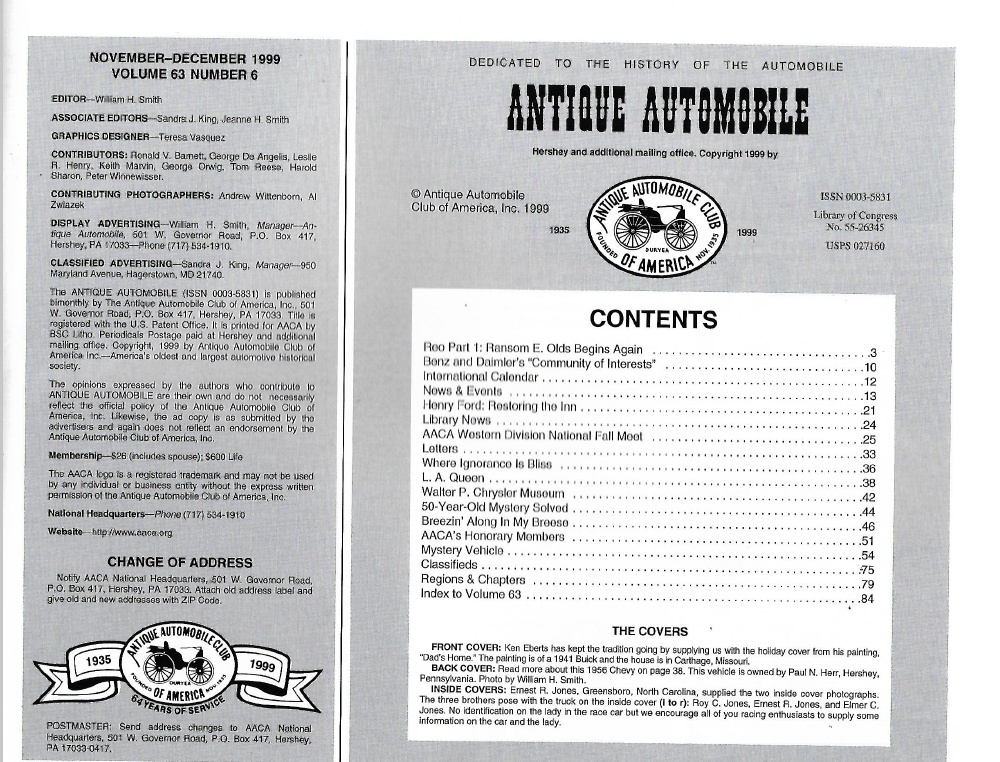 Reviews ANTIQUE AUTOMOBILE 1999 NOV - REO PT 1, '41 BUICK, '56 CHEVY, BENZ & DAIMLER