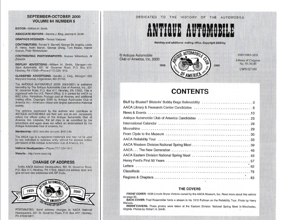 Reviews ANTIQUE AUTOMOBILE 2000 SEPT - '38 LINCOLN BRUNN VICTORIA, '10 PULLMAN