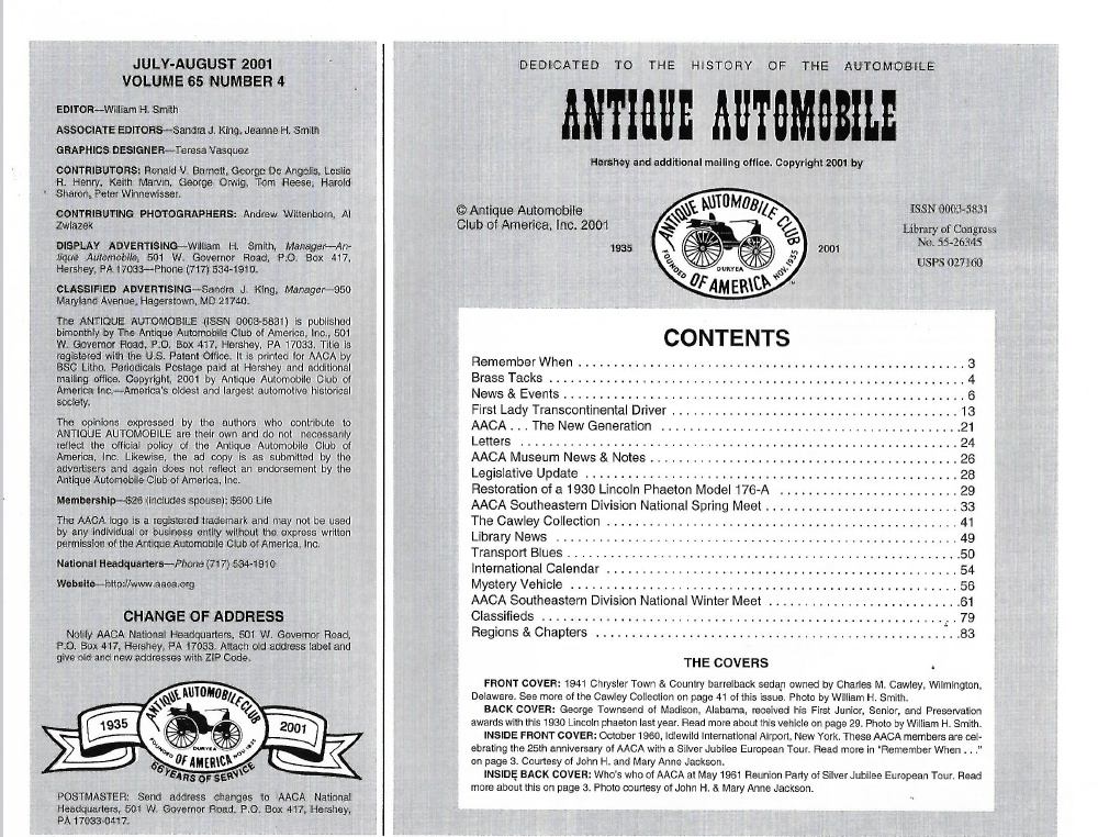 Reviews ANTIQUE AUTOMOBILE 2001 JULY - '41 CHRYSLER TOWN & COUNTRY, '30 LINCOLN PHAETON