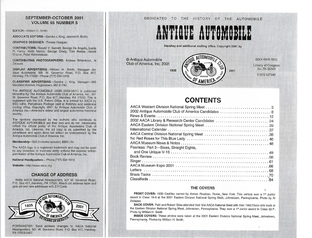 Reviews ANTIQUE AUTOMOBILE 2001 SEPT - '30 CADILLAC, '63 DIVCO MILK TRUCK, PEERLESS