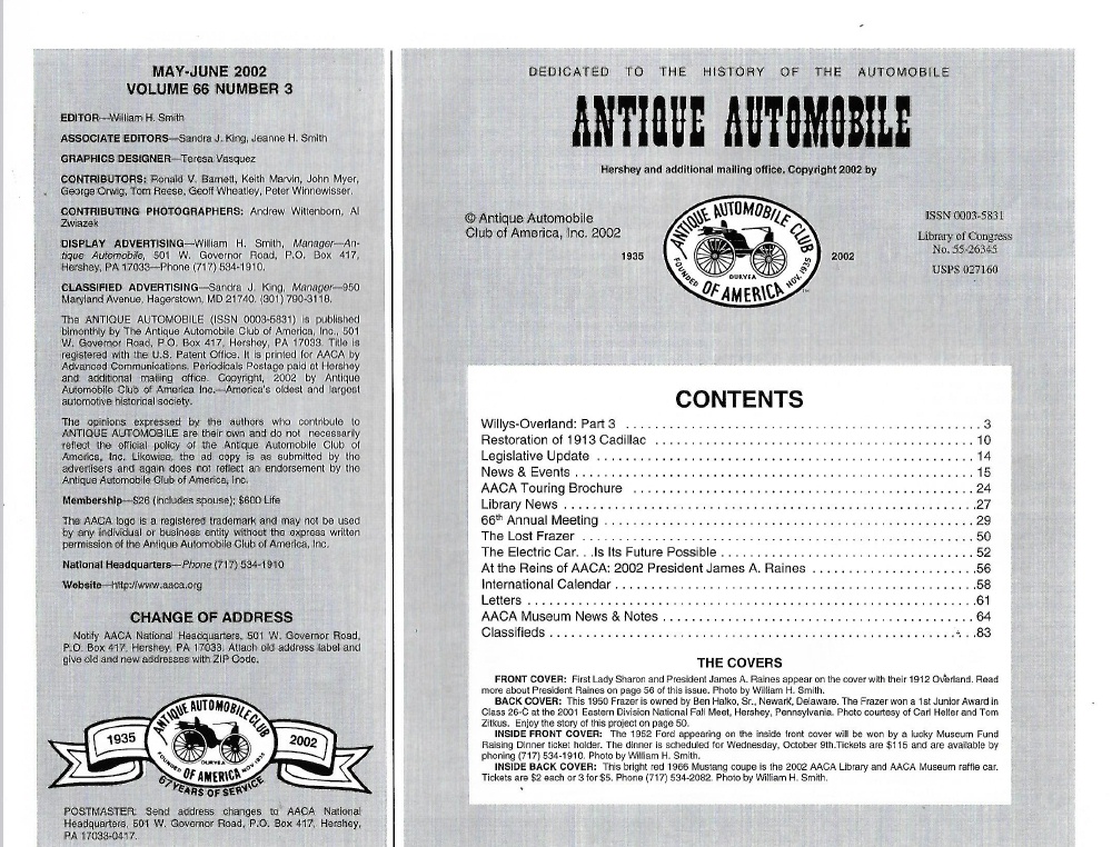 Reviews ANTIQUE AUTOMOBILE 2002 MAY - '12 OVERLAND, '50 FRAZER, '66 MUSTANG