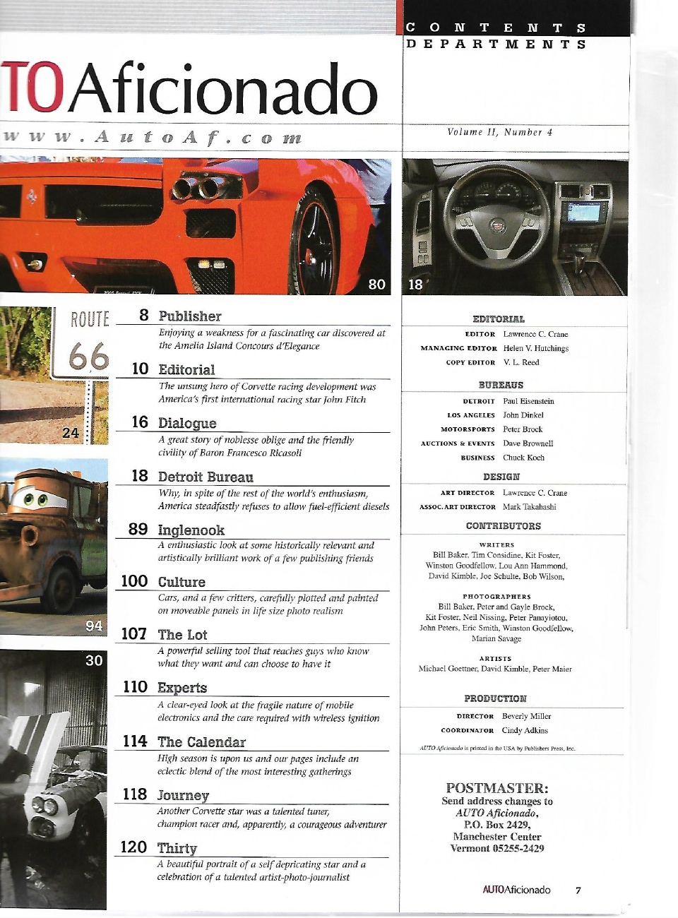 Reviews AUTO AFICIONADO 2006 JULY/AUG - ALMS AUDI R10, Z06, PIXAR COLLECTION