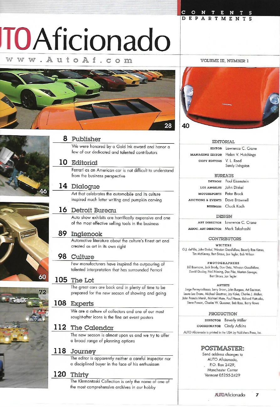 Reviews AUTO AFICIONADO 2007 JAN/FEB - FERRARI, LAMBORGHINI, ALMS, ELECTRIC SPORT