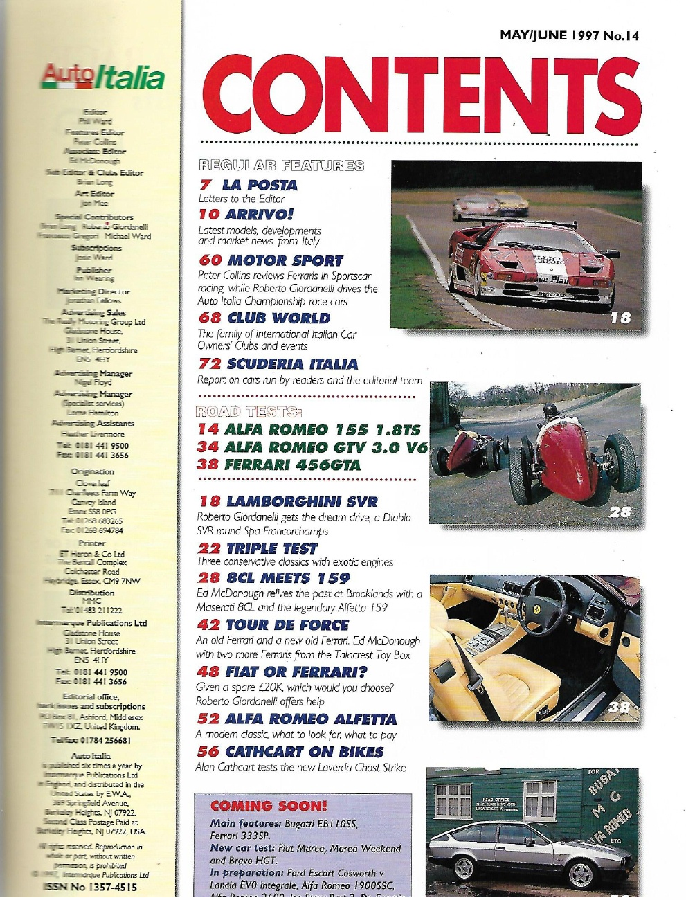 Reviews AUTO ITALIA 1997 MAY/JUNE - TESTS: ALFA 155 1.8 TS, GTV 3.0 V6, FERRARI 456 GTA