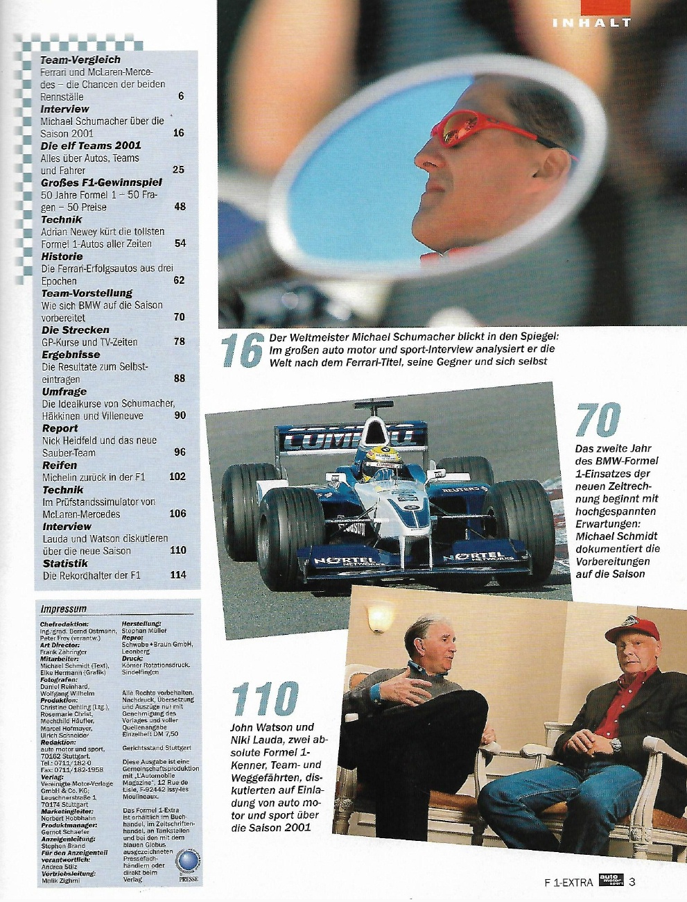 Reviews AUTO MOTOR SPORT FORMEL 1-EXTRA 2001 - GERMAN LANGUAGE RACING ISSUE