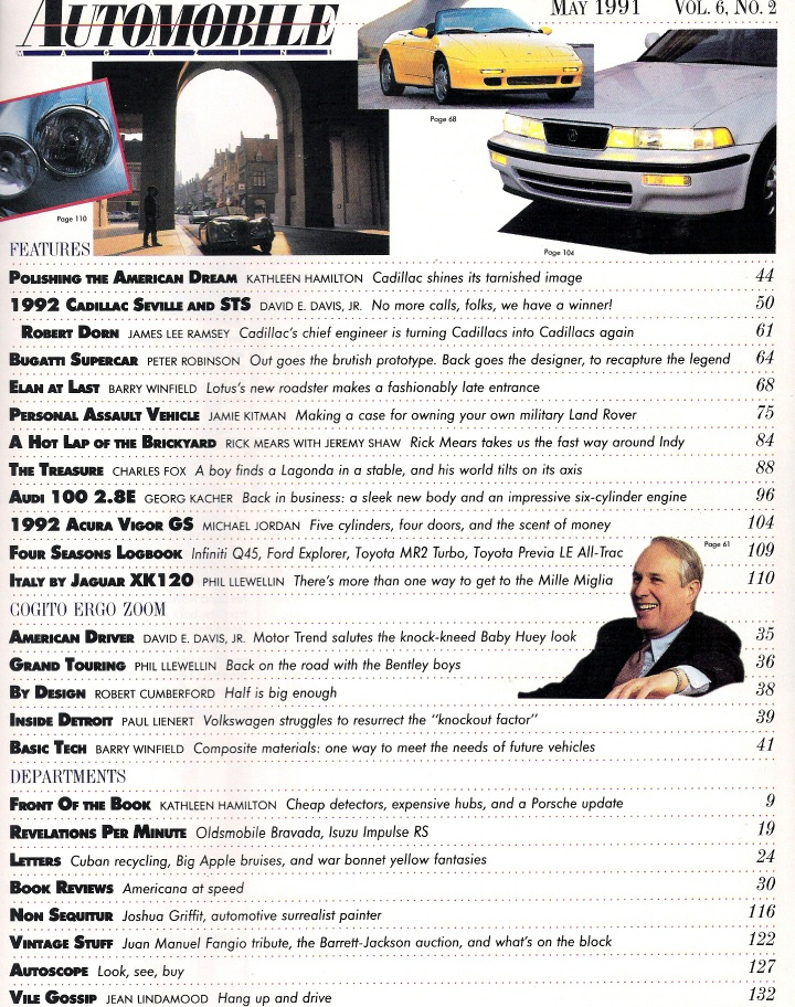 Reviews AUTOMOBILE 1991 MAY - BUGATTI, VIGOR, CADDY STS, LOTUS ELAN, AUDI, ACURA, OLDS