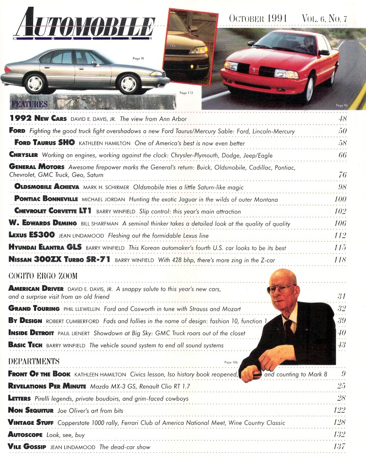 Reviews AUTOMOBILE 1991 OCT - '92 CARS, SHO, LT1 VETTE, LEXUS, ACHIEVA, ELANTRA, 300ZX